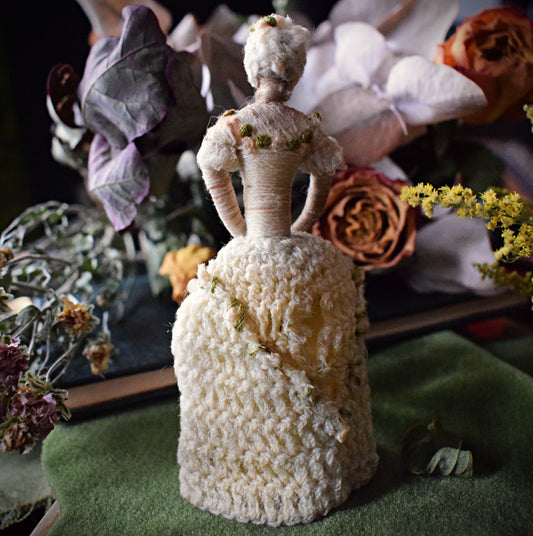 Antique Marie Antoinette-Inspired Crochet Doll with Floral Detailing