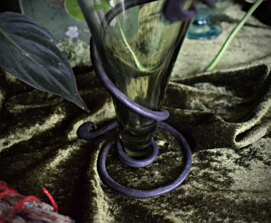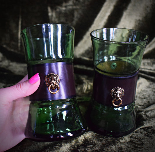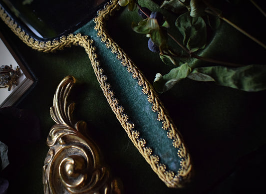 Opulent Emerald Green Hand Mirror with Gold Lace Accents